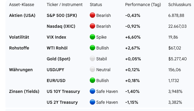 • Zinsen/ Marktrenditen: Klassischer Flight-to-Quality – Treasuries und Bunds werden gekauft, Renditen sinken kurzfristig. Aber: Wenn Öl eine zweite Inflationswelle zündet, dreht sich das. Zentralbanken zwischen Wachstumsschwäche und Preisdruck – das ist das Albtraum-Szenario für jede Zinsbuchsteuerung.